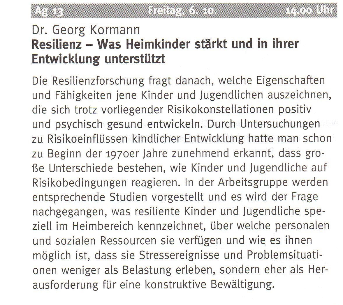 Workshop: „Resilienz – Was Heimkinder stärkt und in ihrer Entwicklung unterstützt.“